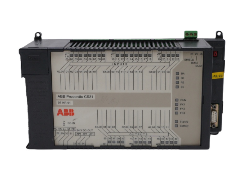The Extensible Central Unit 07KR91 GJR5250000R0252 ABB is a Procontic CS31 CPU for 24VDC systems, featuring 20 isolated inputs and 12 relay outputs for industrial automation and control applications.