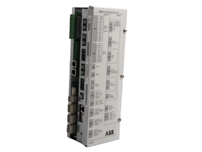 The ABB Drive Control Unit NDCU-12C 64804031 is a drive control unit designed for the grid-side converter in wind turbine systems. It acts as the core controller, managing the IGBT-based converter to regulate the DC link voltage. It communicates with the rotor-side converter via a fiber optic link to ensure synchronized, high-performance power conversion.