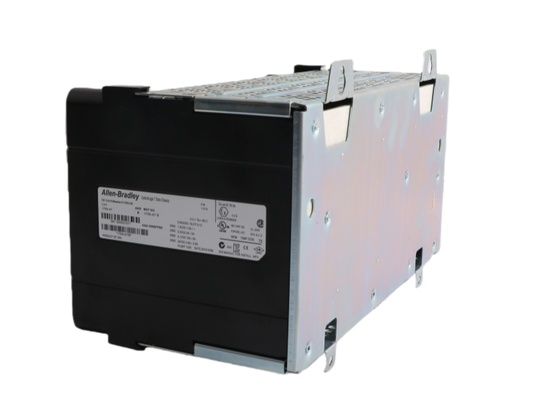 The AB 1756-A7 ControlLogix 7 Slots Chassis is a compact 2-slot chassis for ControlLogix systems, featuring flexible mounting options with either SEM screws or a combination of standard screws and washers.