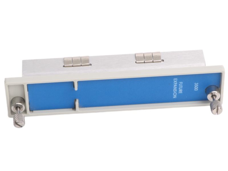 The Half-Height Future Expansion Faceplate Bently Nevada 128276-01E 131151-01 is a silver, half-height blank faceplate for the 3500 Series, designed to cover unused slots for system protection and future expansion.