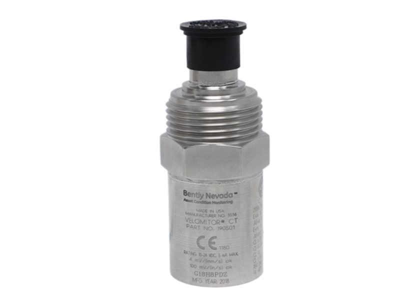Bently Nevada 190501-04-00-00 is a Velomitor CT velocity transducer designed for precise vibration monitoring, converting mechanical motion into electrical signals for reliable condition monitoring of rotating machinery.
