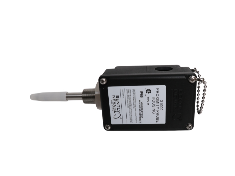 The Bently Nevada 31000-31-05-20-058-00-02 proximity probe housing provides durable PPS and stainless steel protection, enabling easy probe access, accurate radial vibration measurement, and compliance with API 670 standards.