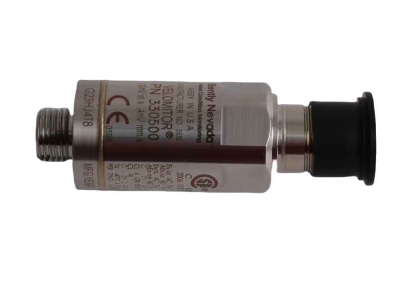 Bently Nevada Velomitor Piezo-velocity Sensors are designed to measure absolute (relative to free space) bearing housing, casing, or structural vibration. The 330500 is a specialized piezoelectric accelerometer that incorporates embedded integrated electronics in a solid-state design. Because the 330500 incorporates solid-state electronics and has no moving parts, it does not suffer from mechanical degradation and wear, and can be mounted vertically, horizontally, or at any other angle of orientation