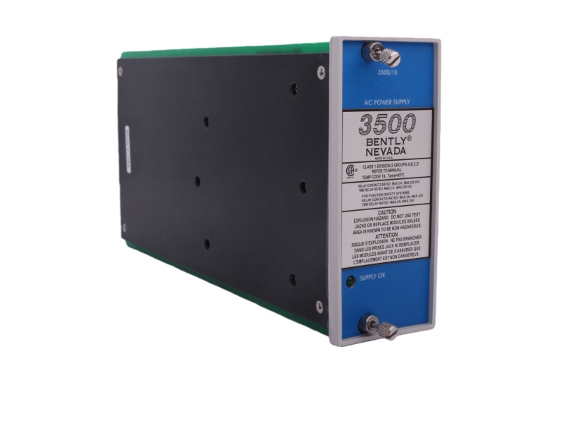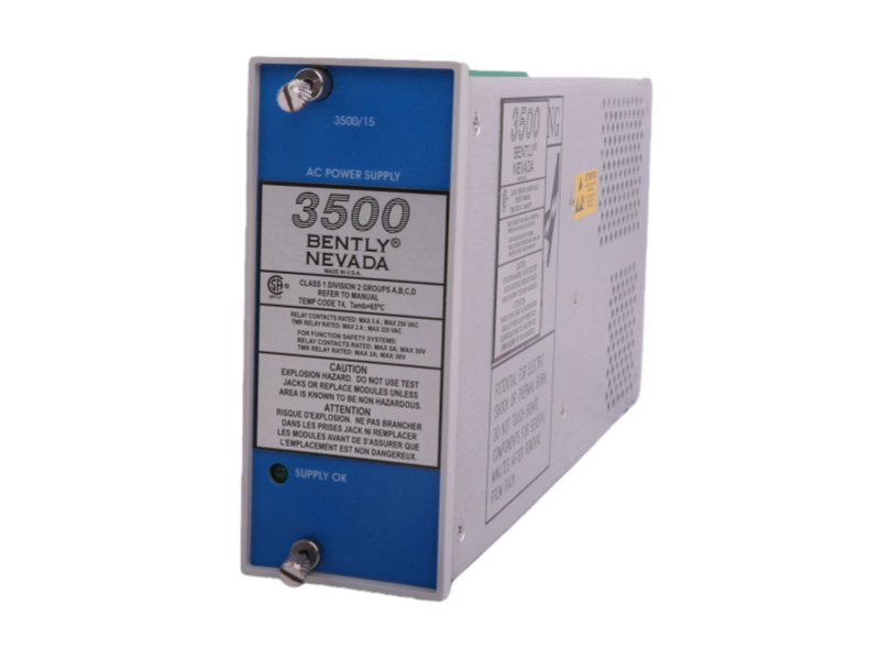 The Power Supply Module is an AC power supply module specifically engineered for 3500 series machinery monitoring systems. This robust unit features dual current capacity (1.9/7.5A) and wide input voltage range (95-125V AC/190-250V AC, 47-63Hz), delivering stable power distribution for critical protection applications.
