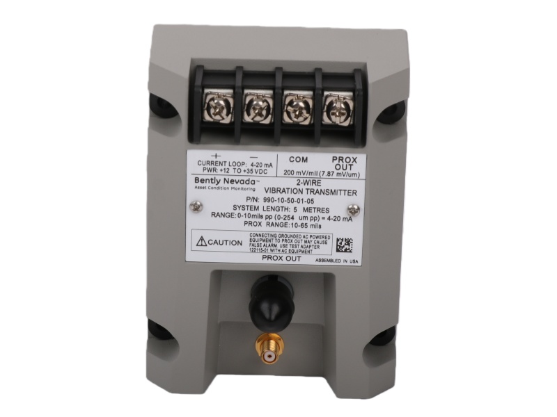 990-10-50-01-01 Bently Nevada Sensor Proximity is a 2-wire loop-powered vibration transmitter, 0–10 mils pp range, 5m cable, DIN-rail mount, CSA Div 2 approved, ideal for OEM machinery control.