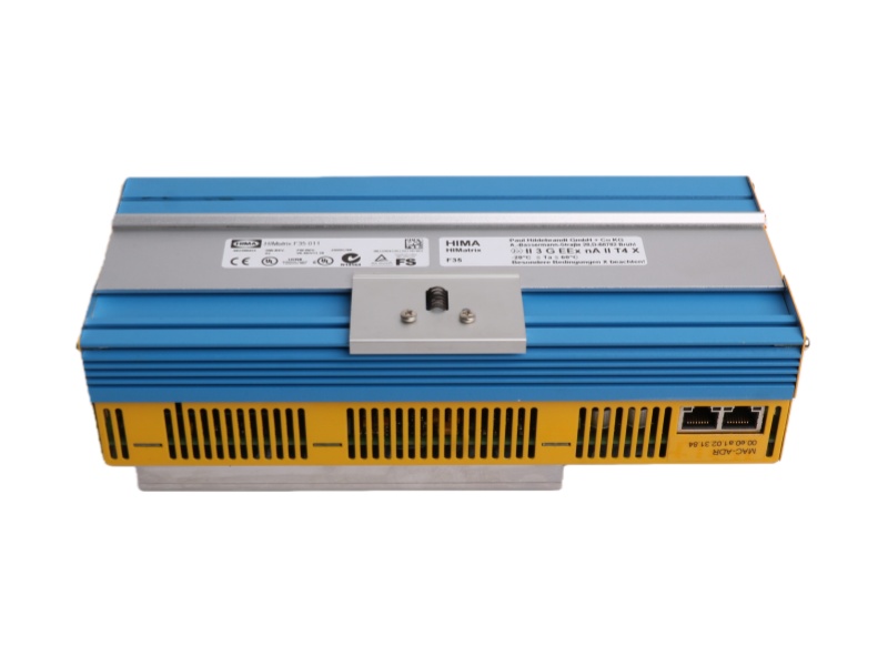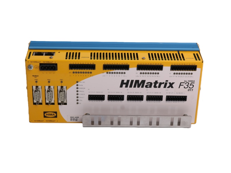 The HIMA HIMatrix F35 011 Safety Controller is a compact safety controller certified for SIL 3 applications according to IEC 61508 and related standards. This robust module, the Safety-Related Controller HIMA HIMatrix F35 011, integrates 24 digital inputs, 8 digital outputs, 2 counters, and 8 analog inputs within a single unit, providing comprehensive I/O capabilities for complex safety functions.