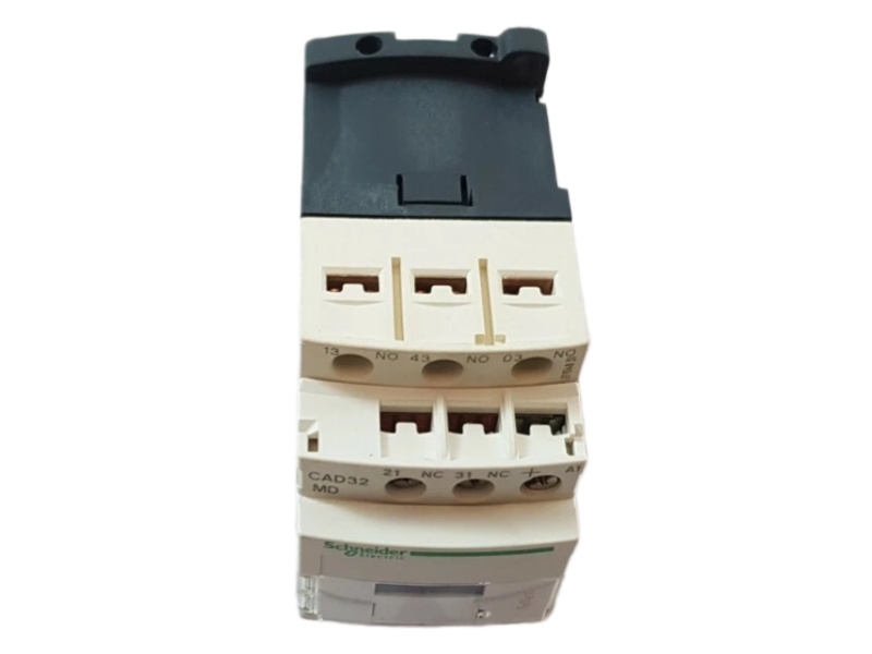 The Control Relay CAD32MD Schneider is a TeSys Deca control relay with 3 NO and 2 NC contacts. It features a 220 V DC control circuit, screw clamp terminals, and robust mechanical durability for industrial applications.
